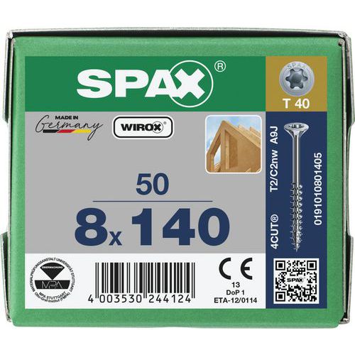 Doos met 50 TX platkophoutschroeven Ø 8mm - Spax