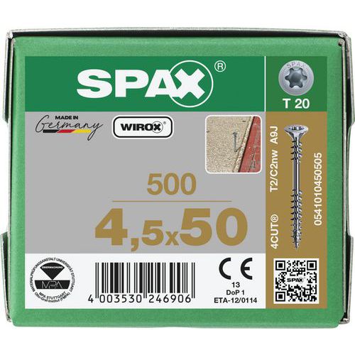 Doos met 500 afstandschroeven TX Ø 4,5 mm, Materiaal: Staal, Schroefdraad Ø: 4.5 mm, Schroef uitsparing: Torx