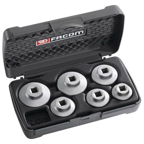 - Alle maten oliefilterdoppen die nodig zijn voor olieverversen in één handige doos.
