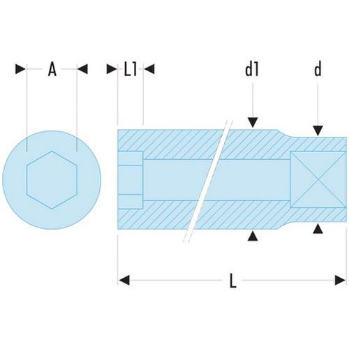 - Lange doppen voor toegang in schachten of lange schroefdraden.