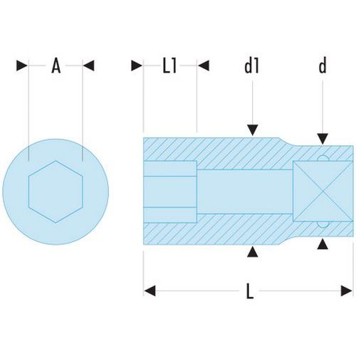 | Productnaam | Dopsleutels 1/2, 6-zijdig, metrisch, Aantal kanten: 6, Type nr.: S.34H, Nuttige diepte: 2.0 cm |