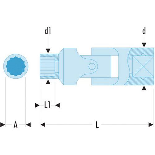 Dopsleutels 3/8 scharnierend, 12-kant, inchmaten