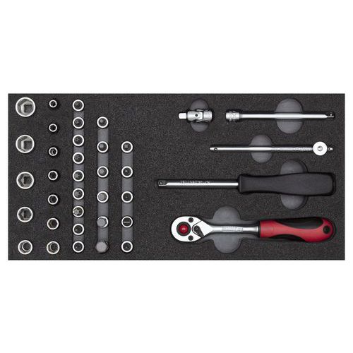 | Productnaam | Dopsleutelset 1/4 in 1/3 module 37 delig R22150006, Type nr.: 3301705, Aantal stuks: 37, Gewicht: 870 g |