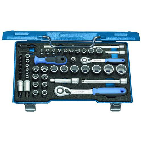| Productnaam | Dopsleutelset 3/8 + 1/4 50 delig Ø30 TX20 U-20, Aantal stuks: 50, Type nr.: 2075695 |