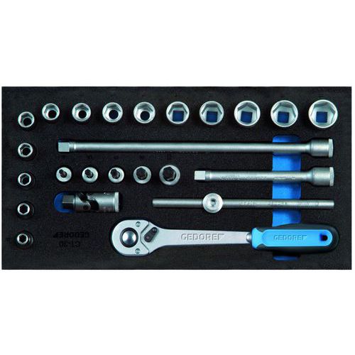 | Productnaam | Dopsleutelset 3/8 in 1/3 module 1500CT1-30, Type nr.: 2308975, Aantal stuks: 24, Gewicht: 1670 g |