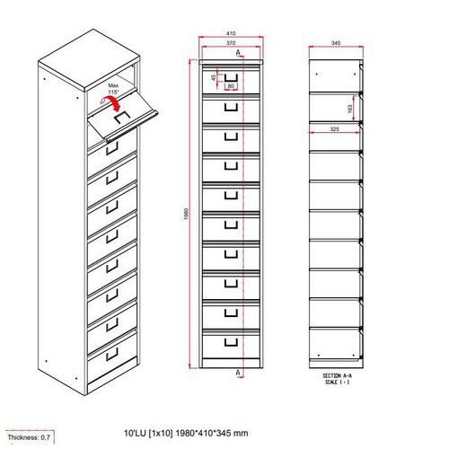 Dossierkast met overslag - 10 vakken - Manutan Expert