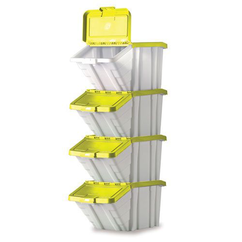 Robuuste, multifunctionele sorteerbakken met meerkleurige deksels.