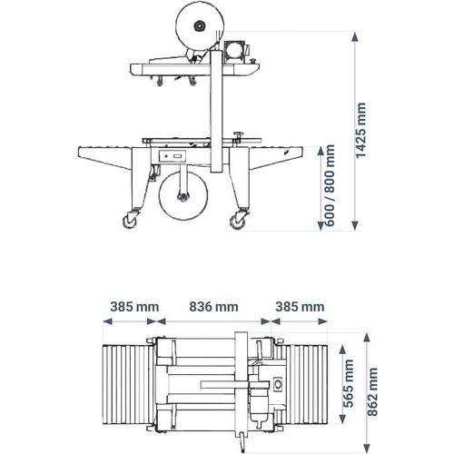 | Productnaam | Dozensluitmachine met een boven-/onderaandrijving, Max. breedte voor pakket: 500 mm |