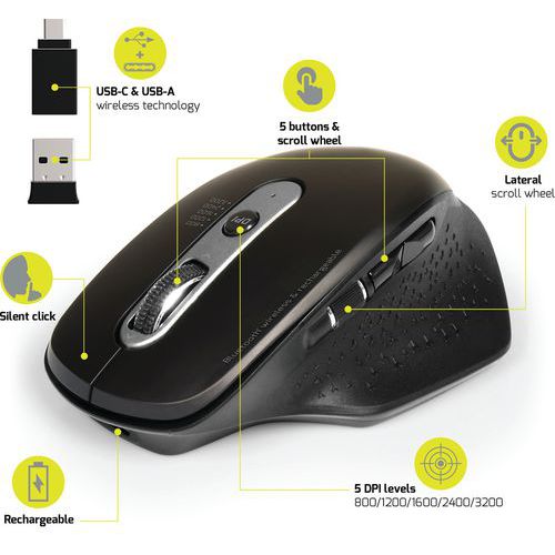 | Productnaam | Draadloze en oplaadbare muis Pro Bluetooth, Type sensor: Optische, Type scrollwiel: Scrollwiel |