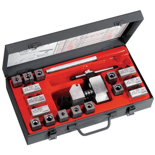 - Maakt de productie mogelijk van conische kragen van 45° aan het uiteinde van koperen buizen zonder dat het metaal moet worden uitgegloeid.