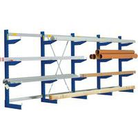 - Enkelzijdige en dubbelzijdige draagarmstelling voor de verticale opslag van lange goederen.
