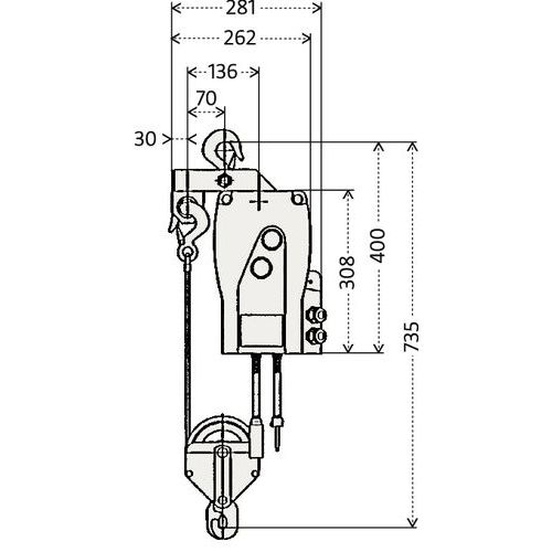 De kabel wordt aangedreven door een klempoelie met een automatische blokkering proportioneel aan de belasting (hetzelfde systeem als de Tirfor-apparaten) voor een onbeperkte hefhoogte.