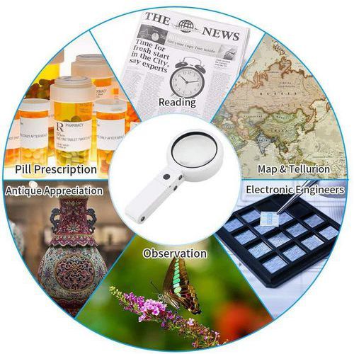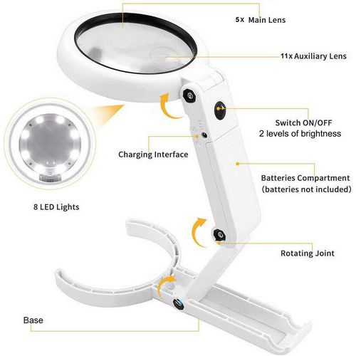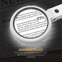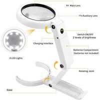 Licht: 8 LED's met een hoge energie-efficiëntie zijn in deze loep ingebouwd. Ze zorgen voor een helder licht waarmee u in het donker kunt werken.