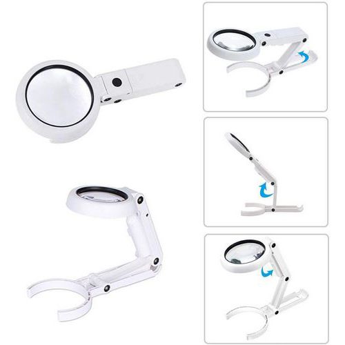 De loep kan op twee manieren worden gebruikt: hij kan in de hand worden gehouden als een normaal vergrootglas, of u schuift hem uit en gebruikt hem als een tafellamp.