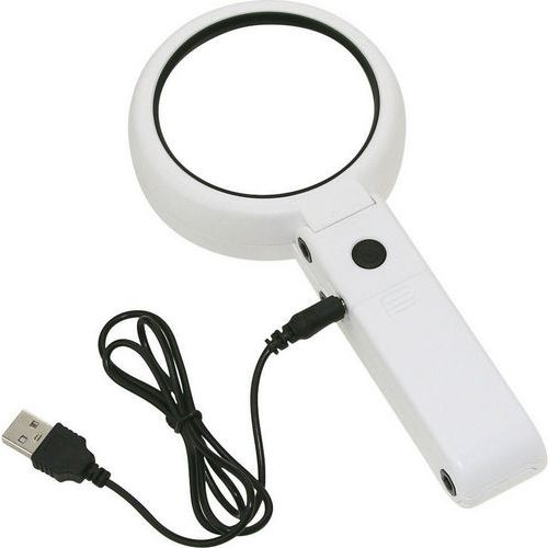 Ontwerp met dubbel circuit: de loep kan worden gevoed via de USB-kabel (meegeleverd) of via 3 AAA-batterijen (de batterijen zijn niet meegeleverd).