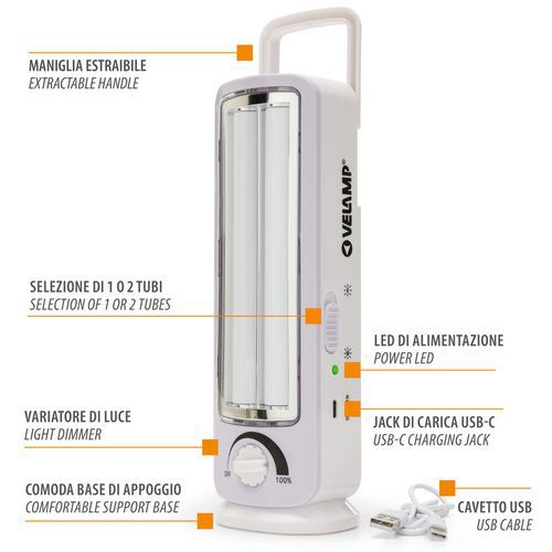 Oplaadbare led-zaklamp met een krachtige LED van 1 W. 100 lumen werkelijke lichtopbrengst voor een zichtbare lichtbundel tot 150 meter. De meegeleverde Li-ion-batterij van 3,7 V en 800 mAh biedt 3 uur autonomie op vol vermogen. De lamp wordt opgeladen via een USB-C-poort (kabel meegeleverd, oplader niet meegeleverd). Vervangbare batterij. Lichte werklamp met een behuizing van ultrasterk ABS. Ideaal voor de industrie, professionals, wandelen, trekking en kamperen. Ondanks haar kracht blijft de oplaadbare zaklamp zeer licht en ligt ze goed in de hand, waardoor ze zeer praktisch is voor het uitlaten van de hond, vissen, in de auto...