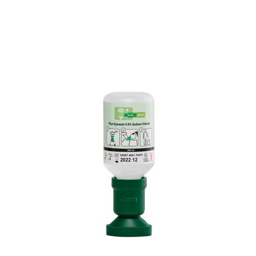 - Flacon met een oogwasoplossing, te gebruiken bij het spatten van zuren of alkalines in het oog.