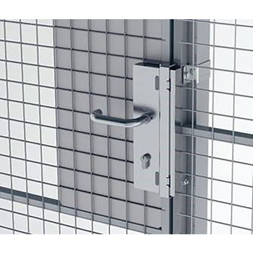 Bevestiging aan de linker- of rechterkant mogelijk. De deur is voorzien van een slot en een handgreep. Om uw magazijn of werkplaats te beschermen of af te bakenen