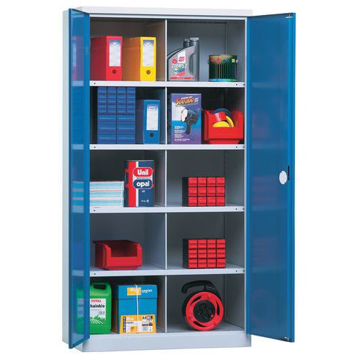 Vakkenkast compleet geleverd met gelakte legborden en metalen verplaatsbare tussenschotten.