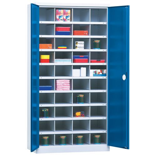 Vakkenkast compleet geleverd met gelakte legborden en metalen verplaatsbare tussenschotten.