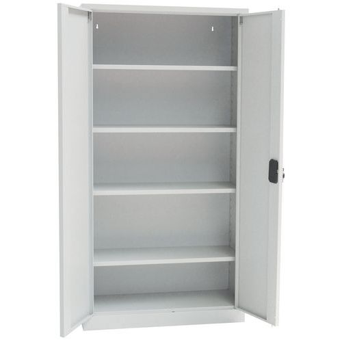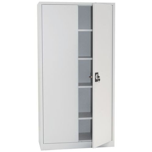 Draaideurkast voorzien van zeer stevige, gewapende wand. 4 verstelbare legborden met een draagvermogen van ongeveer 60 kg. Kast te vergrendelen met een driepunts cilinderslot.