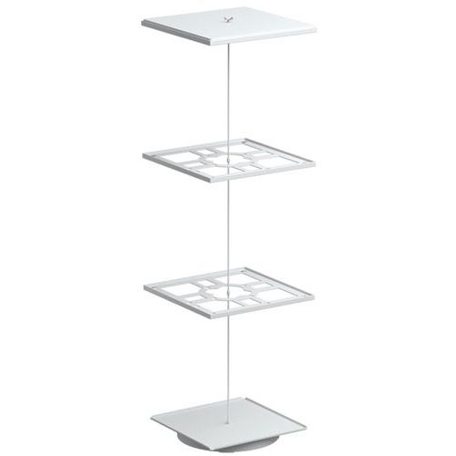 Draaisteun voor tafel ESD. Deze steun is geschikt voor twee opslagkasten naar keuze, hoogte 290 mm en 550 mm, rug aan rug. De kasten moeten afzonderlijk worden besteld. Het geheel bestaat uit een basis op kogellagers en een bodemplaat. Geleverd met een aansluitsnoer voor aarding. Maximale belasting: 50 kg.