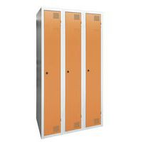 Droogkast met hete lucht, zeer robuust, met opbergvak en hangvakken. Behuizing en deur van elektroverzinkt plaatstaal, met verstevigd uiteinde over de gehele hoogte. Comfortabel in gebruik dankzij het scharniersysteem dat een openingshoek van 180° biedt. Hygiënisch met een dubbele ventilatieopening aan de voorkant, boven- en onderzijde van de garderobekast. Fraaie afwerking van epoxylak, verkrijgbaar in een ruim assortiment aantrekkelijke kleuren. 2 sluitingen naar keuze: sleutelslot of overval voor hangslot. Etikethouder op deur. Product gefabriceerd in Frankrijk.