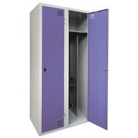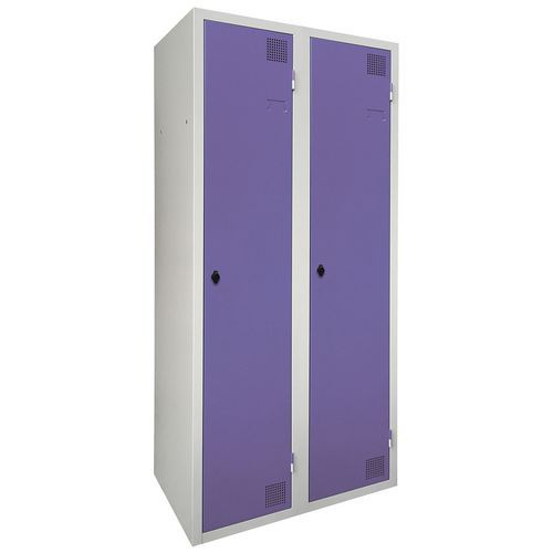 Droogkast met hete lucht, zeer robuust, met opbergvak en dubbel hangvak. Garderobe met dubbele compartimenten: voor het gescheiden opbergen van schone/vuile kleding. Behuizing en deur van elektroverzinkt plaatstaal, met verstevigd uiteinde over de gehele hoogte. Comfortabel in gebruik dankzij het scharniersysteem dat een openingshoek van 180° biedt. Hygiënisch met een dubbele ventilatieopening aan de voorkant, boven- en onderzijde van de garderobekast. Fraaie afwerking van epoxylak, verkrijgbaar in een ruim assortiment aantrekkelijke kleuren. 2 sluitingen naar keuze: sleutelslot of overval voor hangslot. Etikethouder op deur. Product gefabriceerd in Frankrijk.
