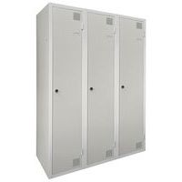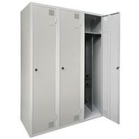Droogkast met hete lucht, zeer robuust, met opbergvak en dubbel hangvak. Garderobe met dubbele compartimenten: voor het gescheiden opbergen van schone/vuile kleding. Behuizing en deur van elektroverzinkt plaatstaal, met verstevigd uiteinde over de gehele hoogte. Comfortabel in gebruik dankzij het scharniersysteem dat een openingshoek van 180° biedt. Hygiënisch met een dubbele ventilatieopening aan de voorkant, boven- en onderzijde van de garderobekast. Fraaie afwerking van epoxylak, verkrijgbaar in een ruim assortiment aantrekkelijke kleuren. 2 sluitingen naar keuze: sleutelslot of overval voor hangslot. Etikethouder op deur. Product gefabriceerd in Frankrijk.