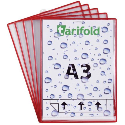 | Productnaam | Drypocket vochtbestendig frame hangend Tarifold A3 verticaal, Zelfklevend: nee, Materiaal: PVC |