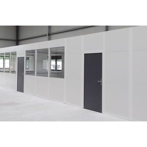 De scheidingswanden kunnen onder een bestaand plafond worden bevestigd of kunnen met een plafond worden besteld, aangeboden als extra uitrusting. Voorzie voor de montage: hoekstijlen en muurbevestigingen. Voeg het indelingsplan toe. Neem contact met ons op voor verschillende opties in de samenstelling.