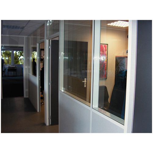 Dubbele scheidingswand in plaatstaal-melamine - Paneel met glas (8 mm) - Hoogte 2,50 m