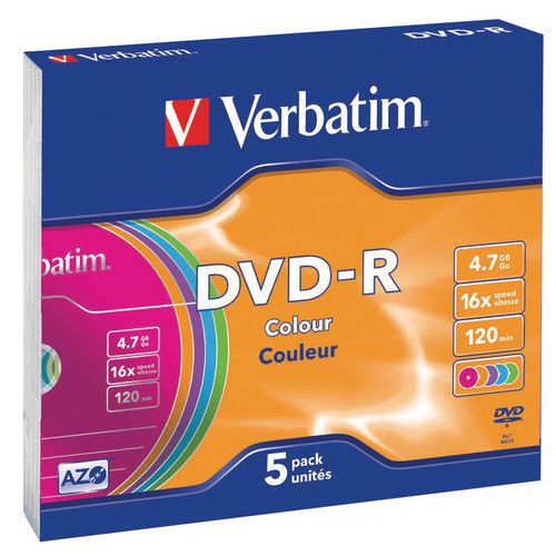 DVD-R Azo kleur - set van 5 - 16x Verbatim