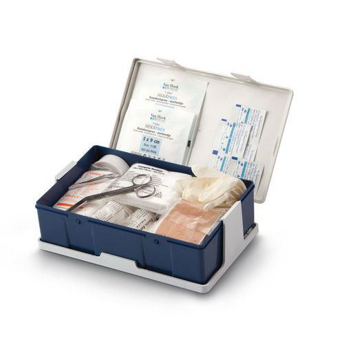 | Productnaam | EHBO-koffer type 12, Kleur: Blauw Wit, Totale lengte: 27 cm, Totale breedte: 17 cm, Totale hoogte: 8 cm |