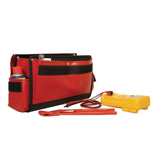Inhoud: - 1 voorzak - 2 zakken aan de zijkant - 1 gereedschapshouder met gescheiden vakken - 1 klittenbandsluiting - 1 handgreep - 1 schouderband