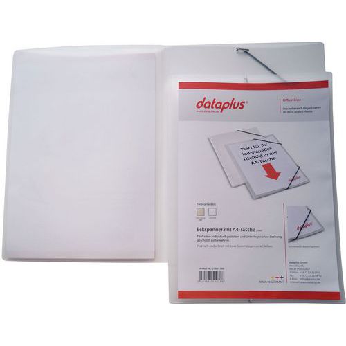 | Productnaam | Elastomap A4 met insteek, Materiaal: Polypropyleen, Kleur: Transparant, Voor formaat: 210 x 297 mm (A4) |