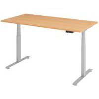 Elektrisch bureau 160×80 cm, beuken/grijs.