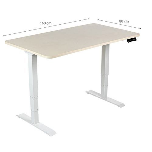 Elektrisch bureau, Type onderstel: 2 poten, Montage: Zelfbouw, Totale breedte: 160 cm