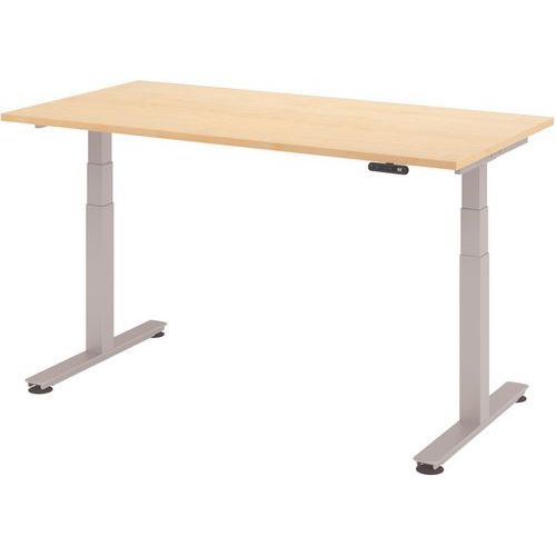 Elektrisch bureau serie XDSM van 160 cm. Bladdikte van 25 mm en verstevigde rand. Zilverkleurig onderstel in T-vorm met geheugen voor standen. Uitgerust met elektrisch bediende progressieve hoogteverstelling: 63,5 - 128,5 cm. Elektrische bediening op 2 niveaus, 2 motoren. Draagvermogen: 80 kg dynamisch, 120 kg statisch. Ongemonteerd geleverd, eenvoudige montage.