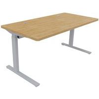 Bureau met onderstel, in hoogte verstelbaar met afstandsbediening. De kolommen worden gelijktijdig aangestuurd door een regeleenheid van 200 W onder het werkblad. De gehele structuur zorgt voor stevigheid in de lengte. Kantelbare goot van staal met een dikte van 1 mm, bestaande uit een vast deel en een beweegbaar deel dat met twee instelwieltjes kan worden ingeklapt om de toegang tot kabels en contactdozen te vergemakkelijken. Rechte rand ABS van 2 mm afgestemd op de kleur van de werkbladen of de structuur.
