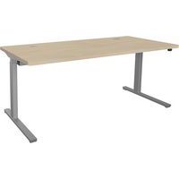 Bureau met onderstel, in hoogte verstelbaar met afstandsbediening. De kolommen worden gelijktijdig aangestuurd door een regeleenheid van 200 W onder het werkblad. De gehele structuur zorgt voor stevigheid in de lengte. Kantelbare goot van staal met een dikte van 1 mm, bestaande uit een vast deel en een beweegbaar deel dat met twee instelwieltjes kan worden ingeklapt om de toegang tot kabels en contactdozen te vergemakkelijken. Rechte rand ABS van 2 mm afgestemd op de kleur van de werkbladen of de structuur.