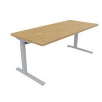 Bureau met onderstel, in hoogte verstelbaar met afstandsbediening. De kolommen worden gelijktijdig aangestuurd door een regeleenheid van 200 W onder het werkblad. De gehele structuur zorgt voor stevigheid in de lengte. Kantelbare goot van staal met een dikte van 1 mm, bestaande uit een vast deel en een beweegbaar deel dat met twee instelwieltjes kan worden ingeklapt om de toegang tot kabels en contactdozen te vergemakkelijken. Rechte rand ABS van 2 mm afgestemd op de kleur van de werkbladen of de structuur.