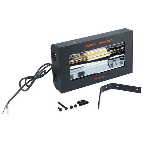 Deze elektrische infraroodverwarming is perfect geschikt voor binnenruimtes en buitenomgevingen (waterbestendig). Beschikt over een verwisselbare lamp voor eenvoudig en zuinig onderhoud. Richtbaar model voor bevestiging aan de muur of aan het plafond. Directe warmte voor een laag energieverbruik. Het apparaat neemt weinig ruimte in, maar kan een zeer groot volume tussen 13 en 18 m2 verwarmen.