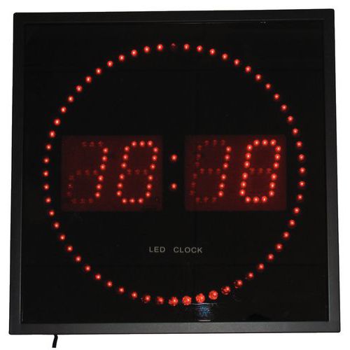 | Productnaam | Elektrische LED klok, Vorm: Rond, Kleur: Zwart, Ø: 28 cm, Behuizing materiaal: Aluminium |