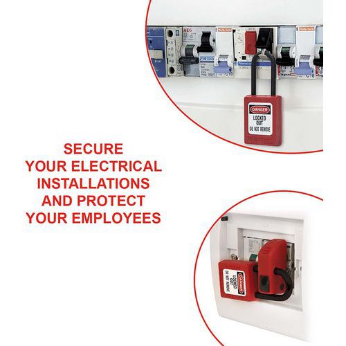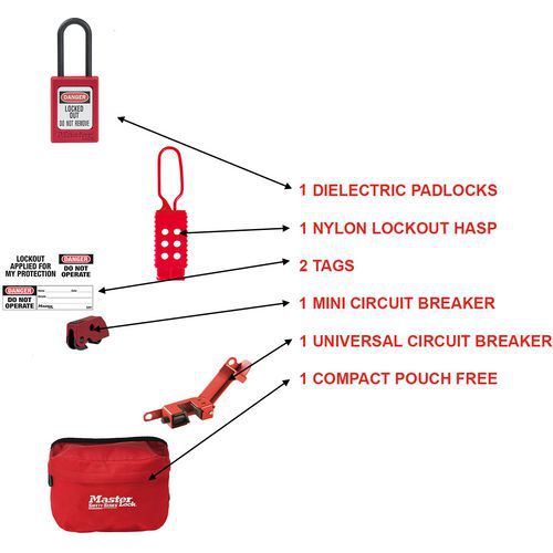 | Productnaam | Elektrische lockoutset Eleckit-EN, Kleur: Rood, Materiaal: Thermoplastisch elastomeer (TPE) |