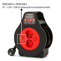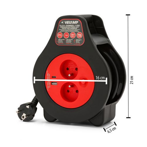 Elektrische snoerhaspel van 7 m met twee Franse stopcontacten (2P+T) en twee USB-poorten. Stekker type E/F - 2-polig (EU-hybride). Kabel van 1 mm², thermische beveiliging en compact formaat. Ideaal voor thuis, op kantoor en in de garage. Handige kabelhaspel van 7 meter. Hiermee kunt u de aansluitingen van elektrische apparaten en gereedschappen netjes opbergen. Ideaal voor thuis, op kantoor, in de werkplaats of in de garage. Maximaal vermogen van de USB-A- en USB-C-uitgangen: 12 W. Schakelt de stroomtoevoer automatisch uit bij oververhitting, wat een veilig gebruik garandeert, zelfs bij langdurig gebruik.