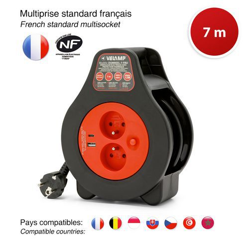 Elektrische snoerhaspel voor thuisgebruik, NF-gecertificeerd, Kabel lengte: 7 m, Beschermingsgraad IP: IP 20