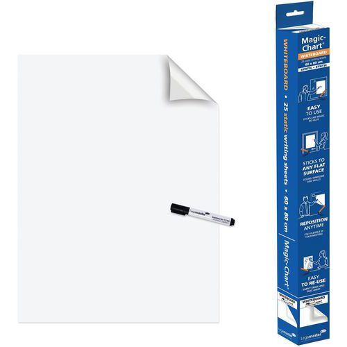 | Productnaam | Elektrostatische blanco folie Magic Chart, Schrijfoppervlak: Papier, Hoogte: 80 cm, Magnetisch: nee |