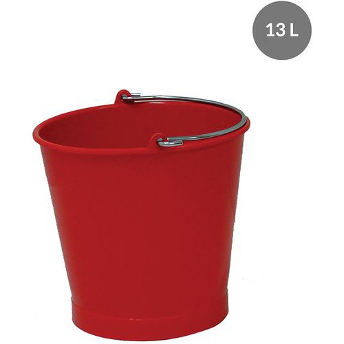 Emmer rond van 10 L tot 14 L met RVS hengsel, Totale inhoud: 13 L, Materiaal: Polyethyleen met lage dichtheid