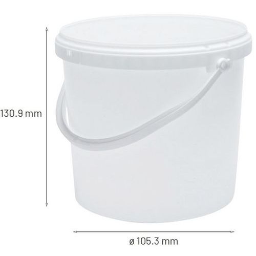 Emmer wit met deksel, Totale inhoud: 1 L, Materiaal: Polypropyleen, Deksel: ja, Gebruik voor voedsel: ja Emmer wit met deksel, Totale inhoud: 1 L, Materiaal: Polypropyleen, Deksel: ja, Gebruik voor voedsel: ja